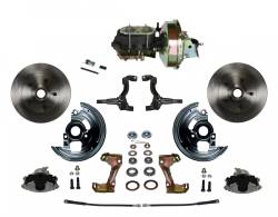 Power Front Disc Brake Conversion Kit Cross Drilled and Slotted Rotors with 9" Zinc Booster Cast Iron M/C Disc/Drum Bottom Mount
