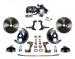 Power Front Disc Brake Conversion Kit Cross Drilled and Slotted Rotors with 9" Chrome Booster Cast Iron Chrome Top M/C Disc/Disc Side Mount