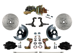 GM AFX Power Front Disc Brake Conversion Kit Cross Drilled and Slotted Rotors with 8" Dual Zinc Booster Cast Iron M/C Disc/Disc Side Mount