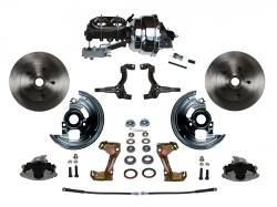 Power Front Disc Brake Conversion Kit Cross Drilled and Slotted Rotors with 8" Dual Chrome Booster Cast Iron Chrome Top M/C Disc/Drum Side Mount