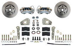 Add the safety, reliability and performance of disc brakes to your Ford Full Size vehicle with our drum to disc conversion. In this front disc brake kit you receive everything you need to mount red powder coated factory style 4 piston disc brakes to the original drum brake spindles currently on your vehicle. This kit is a direct bolt on with NO cutting, drilling or welding required. All components used in these kits are new high quality, precision machined products. A great kit with a factory look and easy installation!