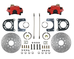 Add the safety, reliability and performance of disc brakes to your vehicle with our Power drum to Power disc conversion with MaxGrip XDS Rotors and Red Powder Coated Calipers. In this Ford power disc brake conversion kit you receive everything you need to mount factory style 4 piston disc brakes to the original drum brake spindles currently on your vehicle. This brake conversion kit for Fords is a direct bolt on with NO cutting, drilling or welding required. All components used in these kits are new high quality, precision machined products. A great kit with a factory look and easy installation!