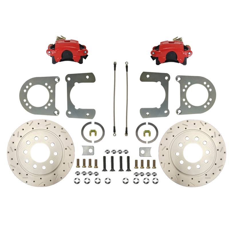 Rear Disc Brake Conversion Kit - 9 In Large Bearing Torino New Style Rear Axle 5 x 5 Wheel Bolt Pattern - Red Calipers